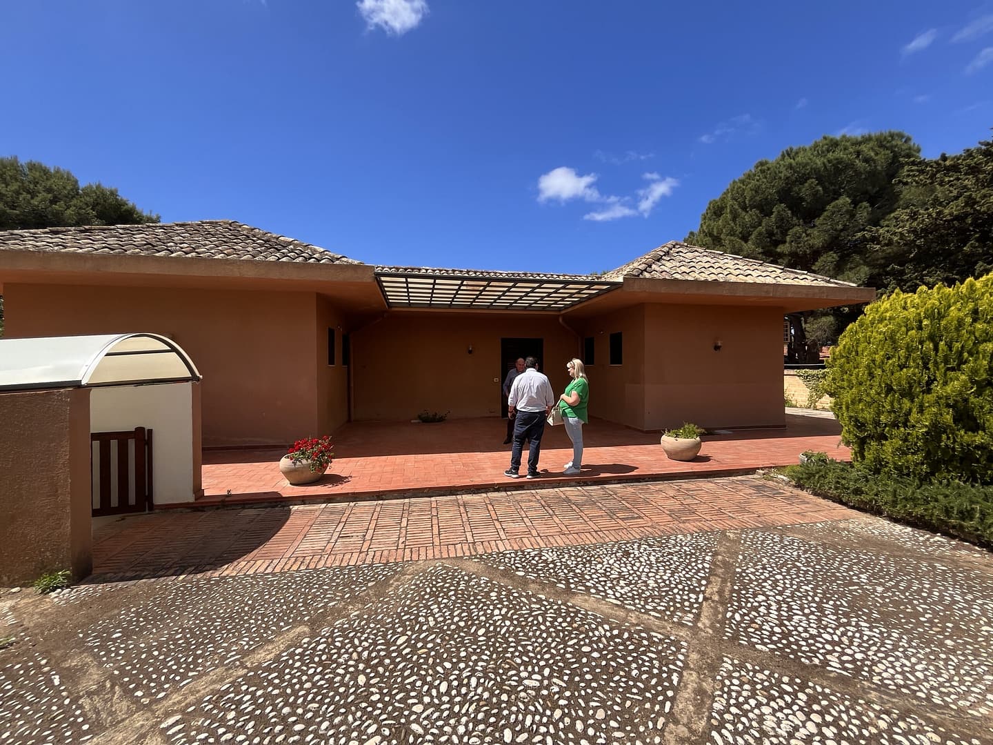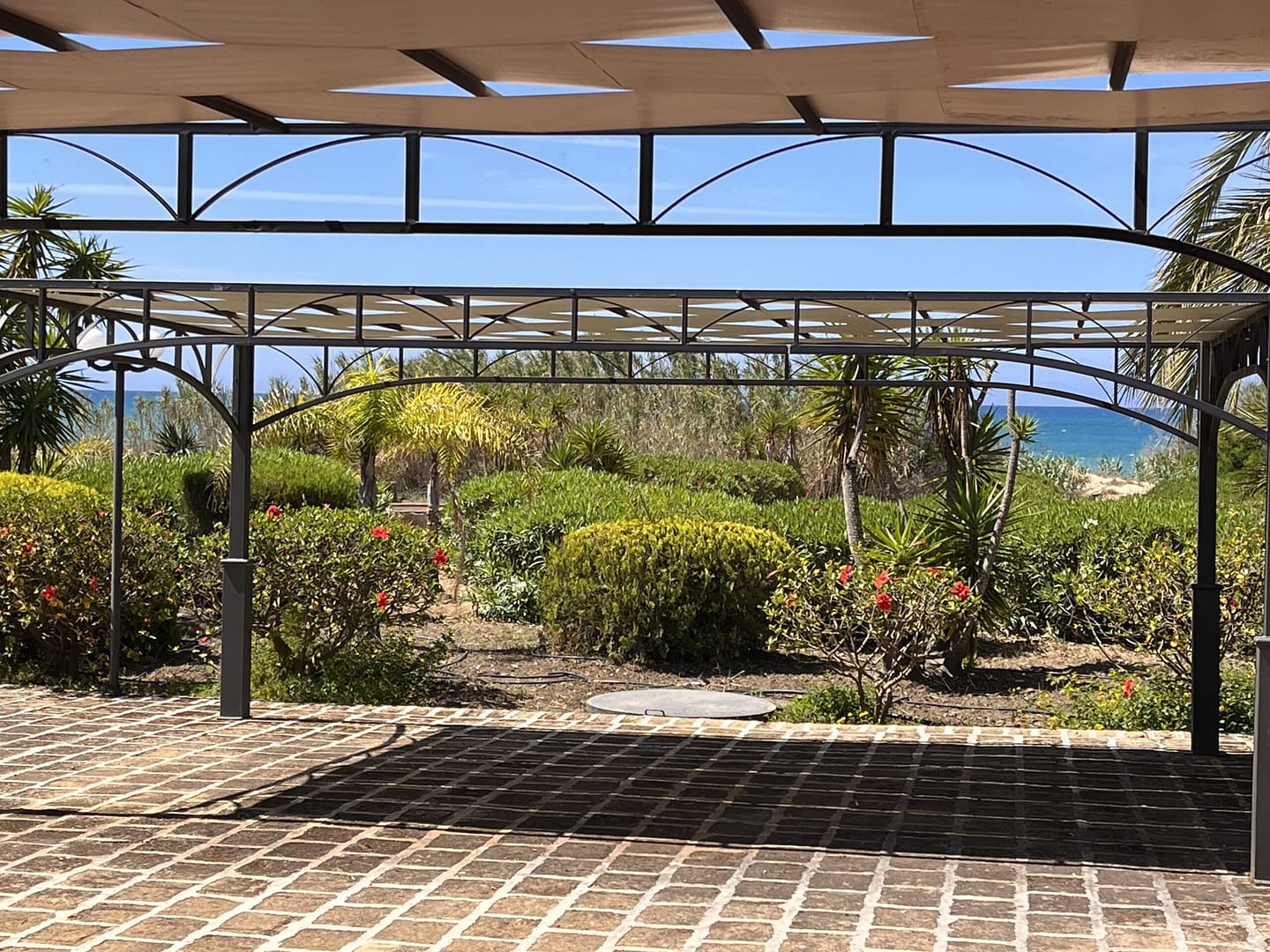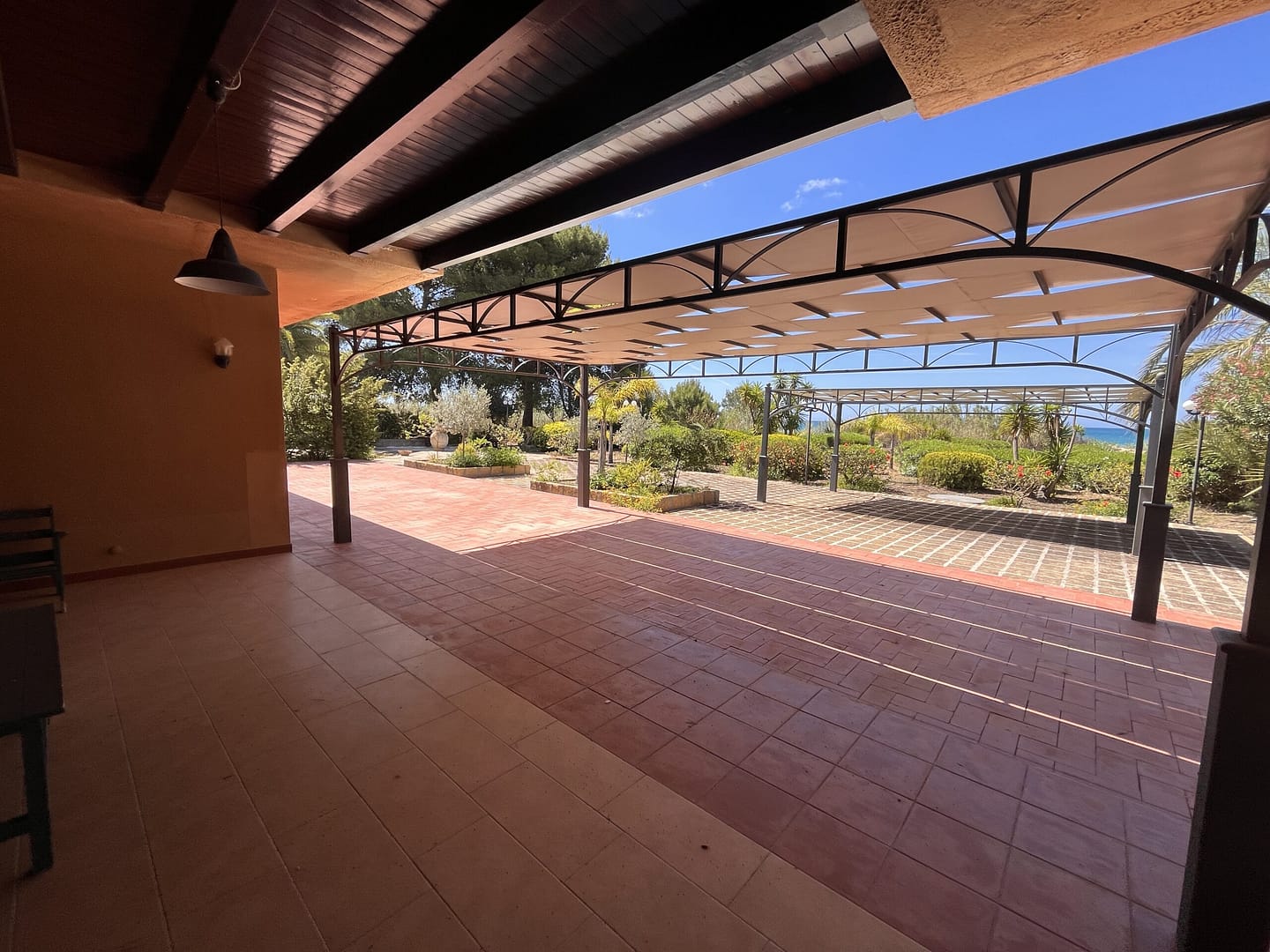 Erst kurz vor dem Strand biegen Sie ab auf einen Privatweg, über den Sie das imposante Anwesen erreichen. Das parkähnlich angelegte Grundstück empfängt Sie mit großzügig gepflasterten Wege- und Parkflächen . Sie sind umringt von einer Vielfalt mediterraner Blumen, Sträucher, Palmen und Bäumen. Sei es der „Phoenix Canariensis“, die Seekiefer, Palmfarn oder Oleander, viele haben sich bereits über mehrere Jahrzehnte entfaltet.