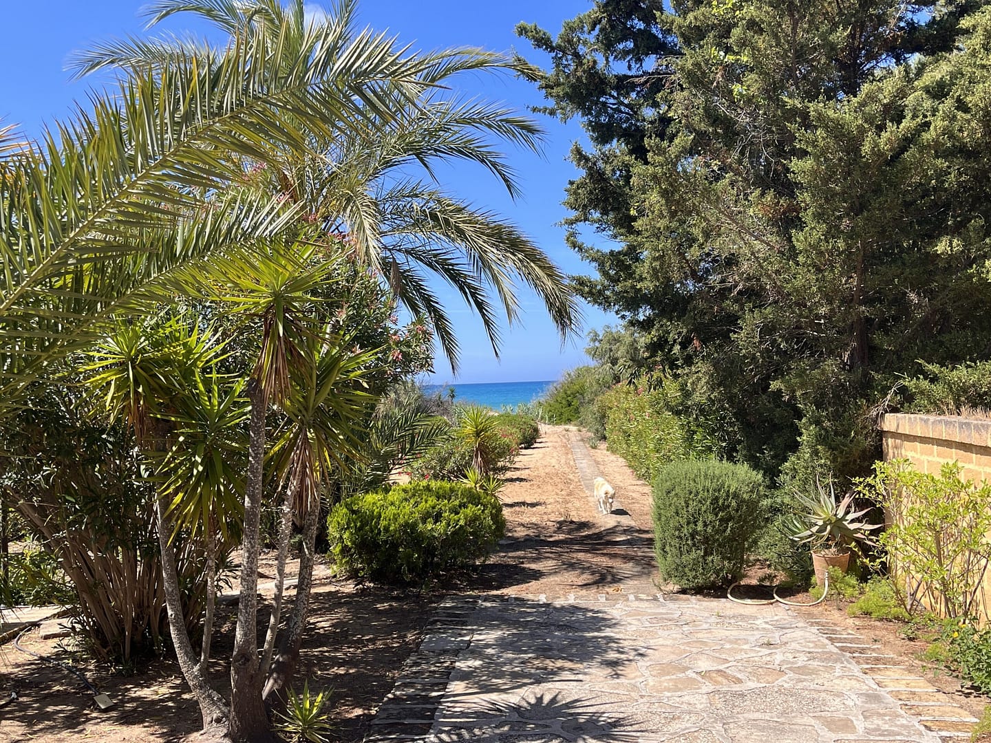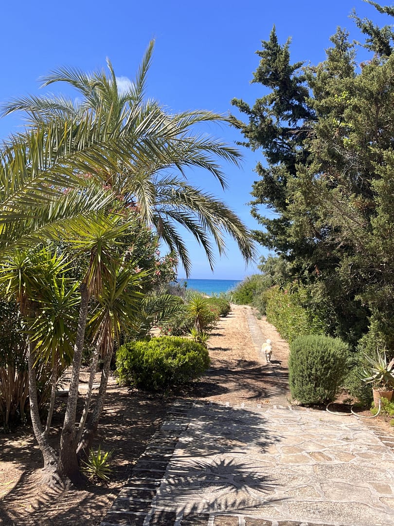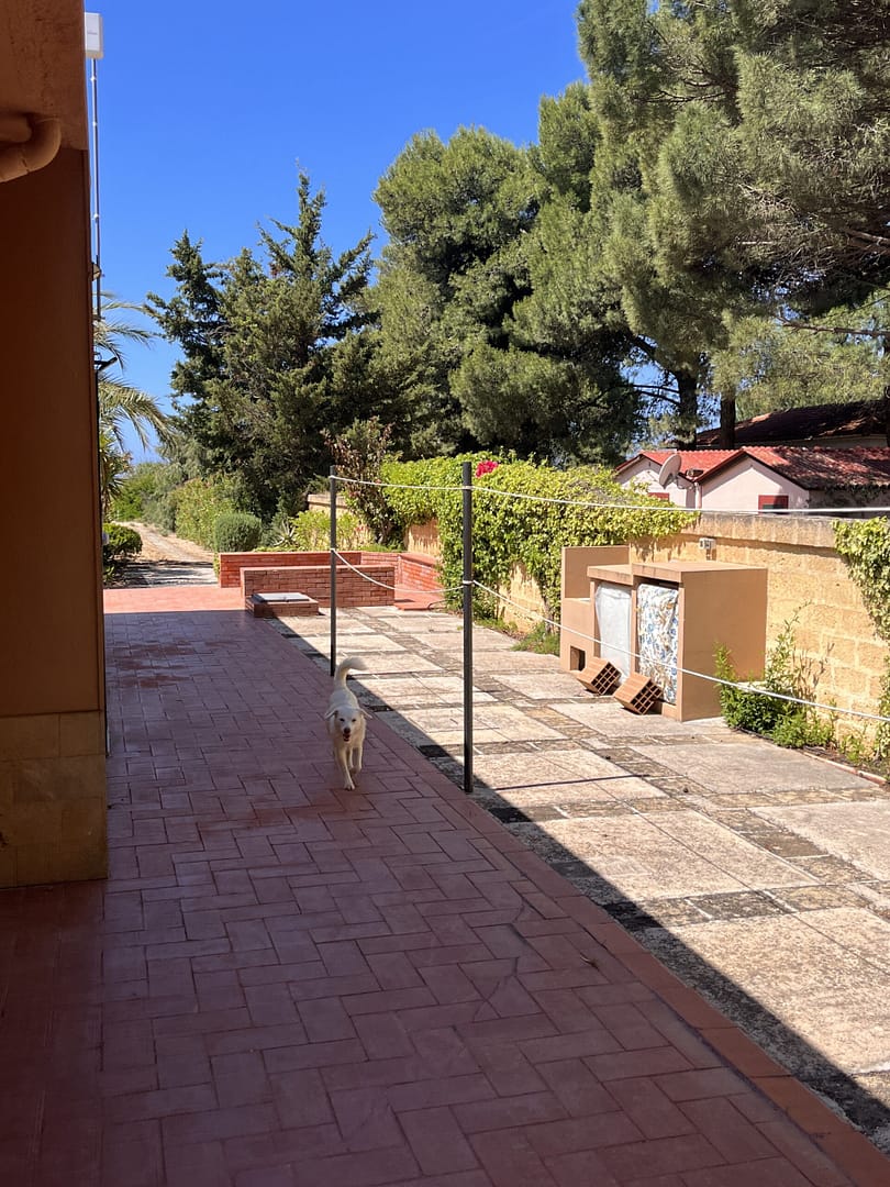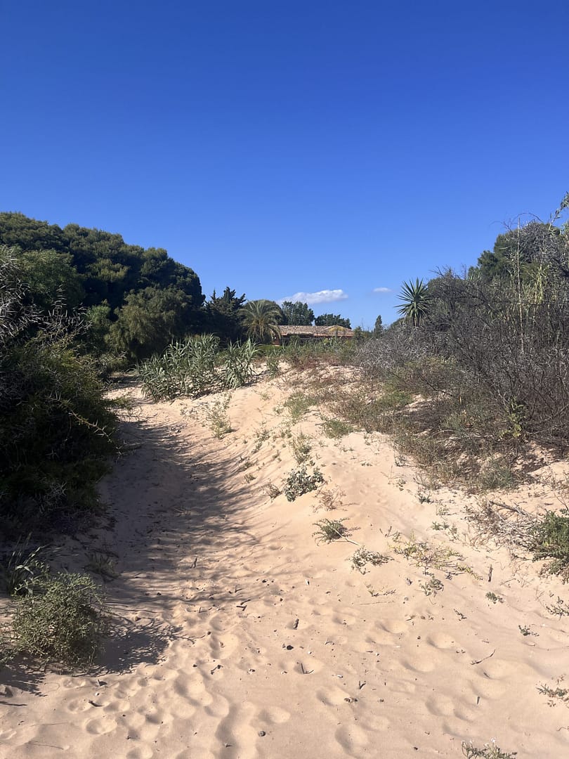 Trotz der exponierten Lage bietet Ihnen dieses Anwesen, auf Grund kaum vorhandener, direkter Nachbarschaft und der imposanten Grundstücksgröße, reichlich Privatsphäre. Mit über ca. 50 Meter Breite grenzt das Grundstück direkt auf der Stranddüne zum Fiori Strand. Bis auf den geschwungenen Durchgang, der (siehe Bild), direkt auf den Strand führt, ist die Düne weitgehend mit anspruchslosen, sehr stichfreudigen Dornbüschen bewachsen. Neben der kommunalen Strom- und Wasserversorgung gibt es zusätzliche, unterirdische Reservetanks für Trinkwasser mit über 10.000 Litern.