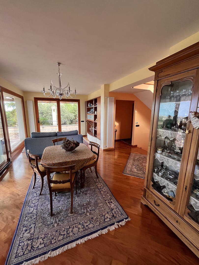 Diese Stadtvilla wurde 2001 auf einem, zum Meer hin, abschüssigen Grundstück mit südlicher Ausrichtung gebaut. Hier befinden Sie sich in der 1. Reihe, mit einer entsprechend grandiosen Aussicht. Die sehr hochwertigen und luxuriösen Wohnflächen erstrecken sich über 3 Ebenen und lassen kaum nur noch wenig Wünsche offen. Dieses Anwesen ist hervorragend geeignet als repräsentative oder private Residenz, wie auch als hochwertiges Ferien- u. Vermietungsobjekt. Die Villa ist umgeben von großzügigen Terrassenflächen, die Ihnen von nahezu allen Bereichen einen grandiosen Ausblick bieten. Neben der schönen und sehr hochwertigen Bepflanzung bietet Ihnen ein kleiner Olivenhain ausreichenden Ertrag an erstklassigem Olivenöl für den Eigenbedarf. Ein Pool sorgt an heißen Tagen für willkommene Abkühlung. Dieses Anwesen ist bereit für den sofortigen Einzug. Hier können Sie, Ihre Familie und Freunde nach Herzenslust entspannen und die Seele baumeln lassen!